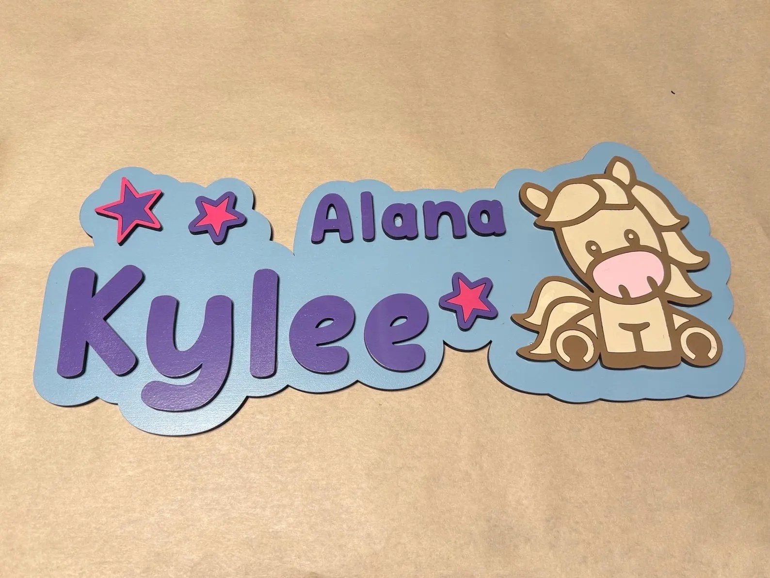 Add a playful touch to your child’s bedroom, nursery, school locker, or bedroom door with our vibrant bubble name signs! Laser-cut and custom-painted, these signs come in a variety of fun themes like flowers, dinosaurs, horses, and zoo animals. Want something truly special? Custom themes are also available! Each sign features letters up to 8 inches tall, with the width determined by the length of the name. These signs are perfect for creating a unique, personalized space that your child will love.
